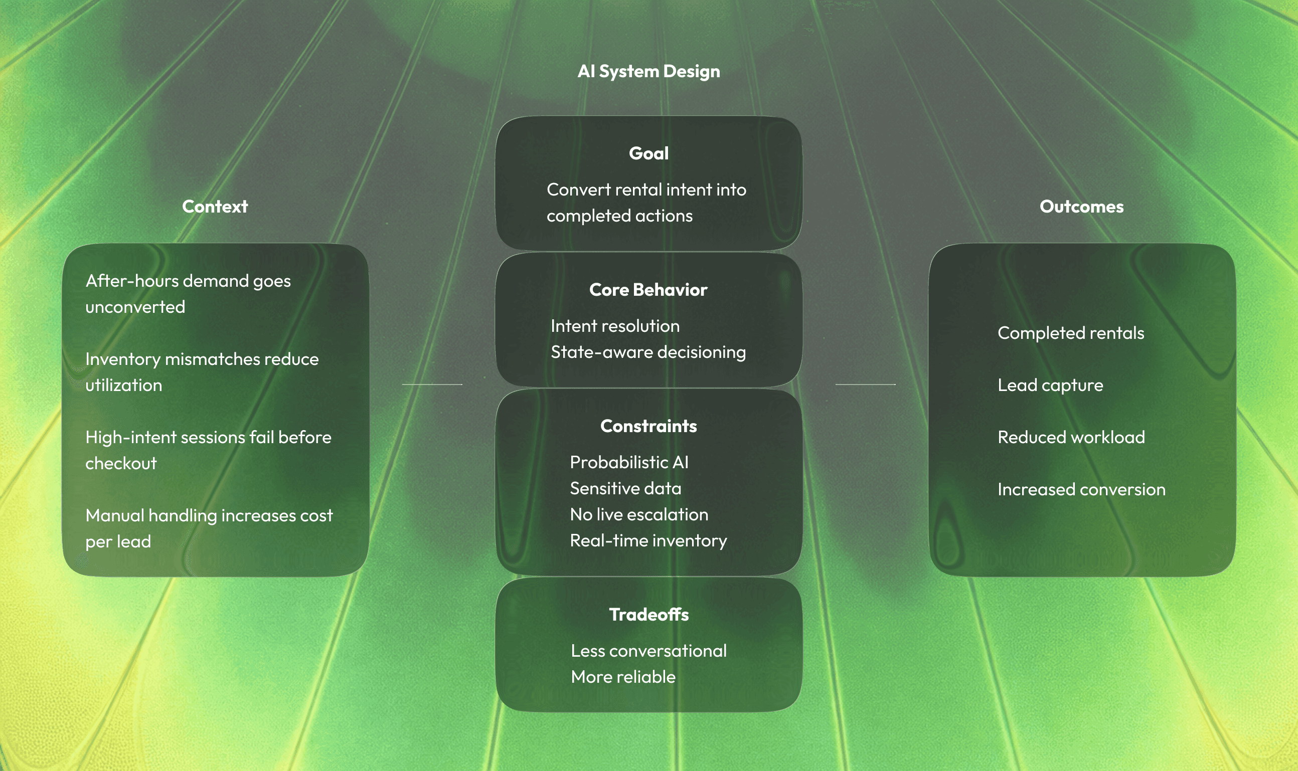 I designed a fully transactional AI rental agent, treating AI behavior as a core design material rather than a UI layer.