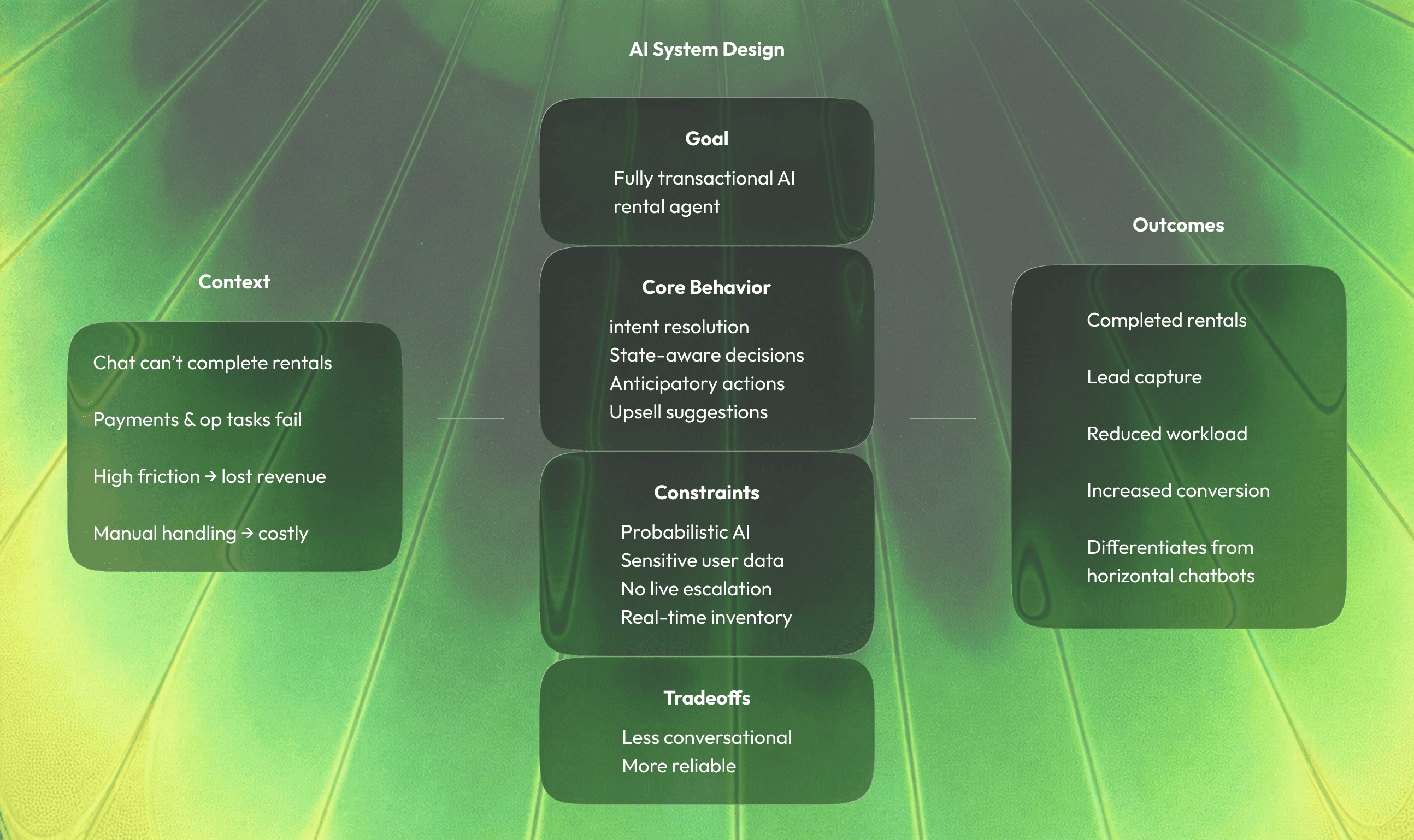 I designed a fully transactional AI rental agent, treating AI behavior as a core design material rather than a UI layer.