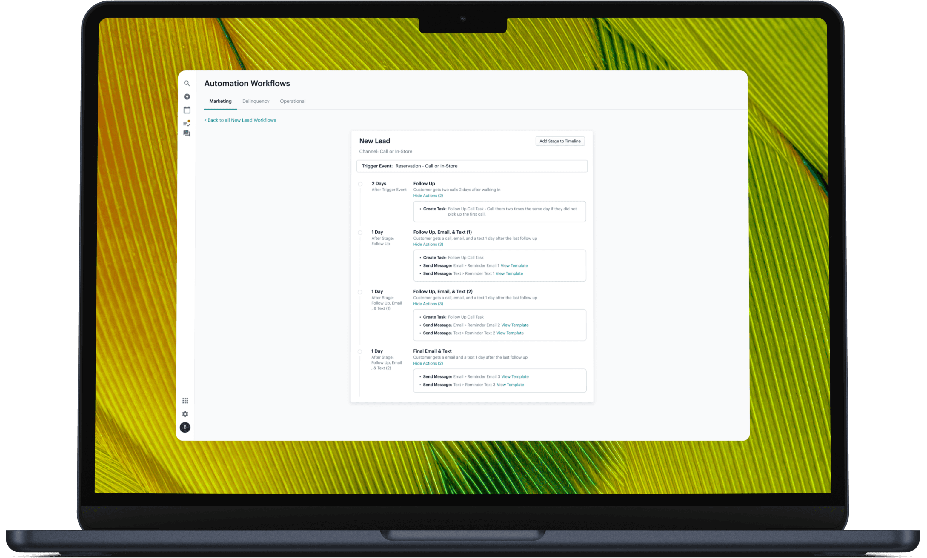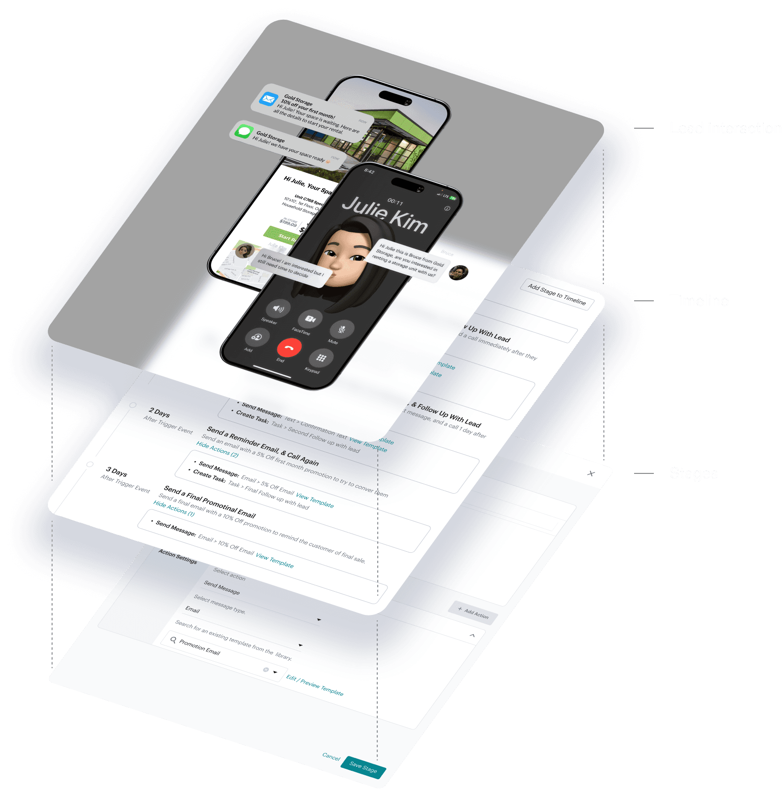 Lead interaction – Emails, texts, calls triggered by timeline logic.